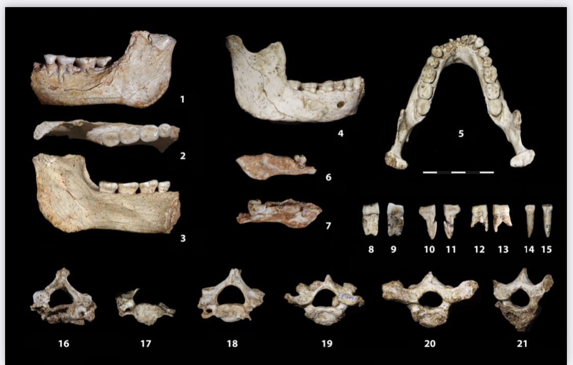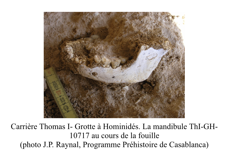 The study presents the analysis of newly discovered hominin fossils found in a cavity within the Thomas I quarry, known as the Hominid Cave, near Casablanca. The material includes several human mandibles—belonging to two adults and one child—as well as dental and post-cranial remains.